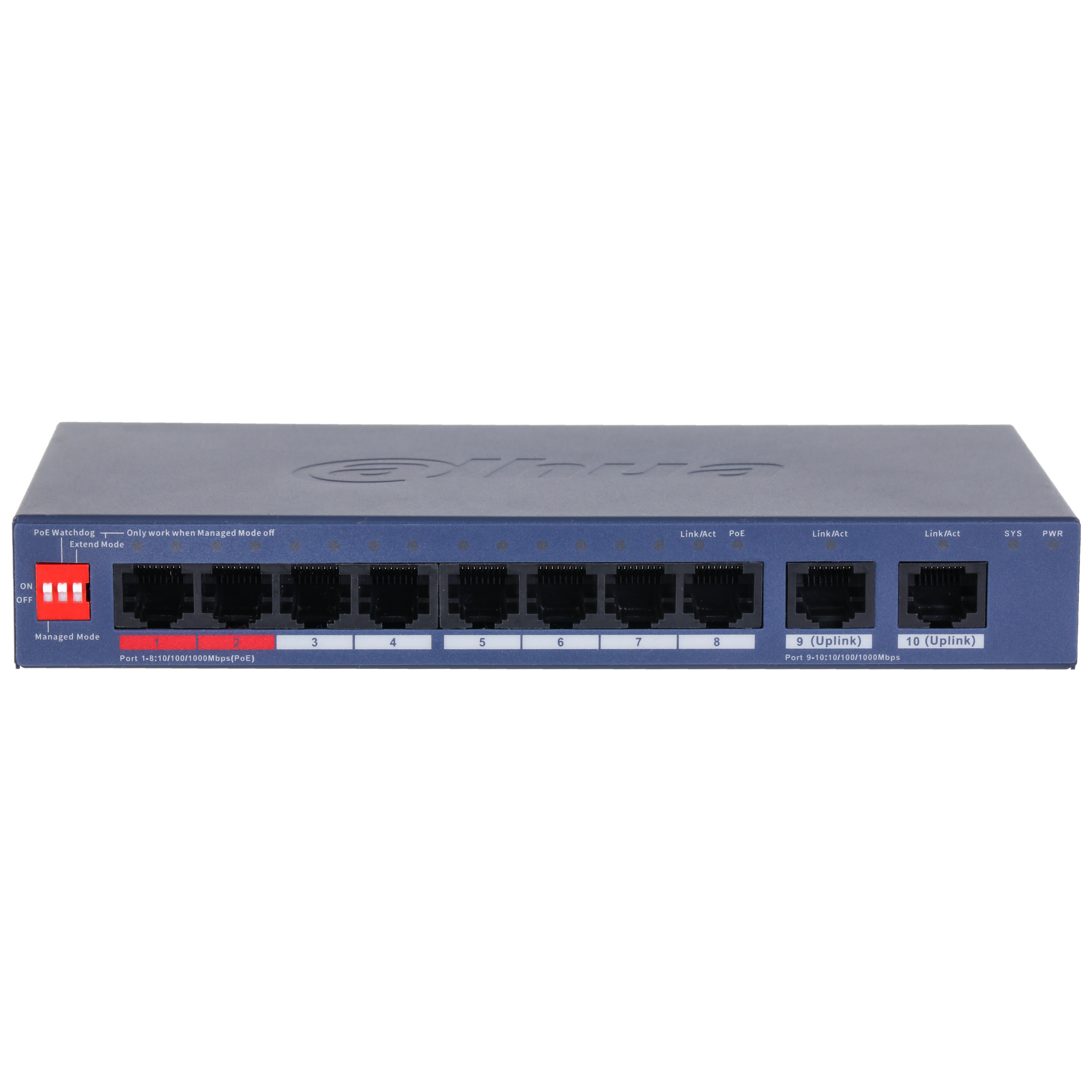 Manages PoE power consumption and PoE power on/off. Supports Intelligent PoE